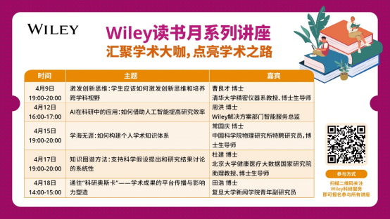 船票已备好,船首指向知识的海洋。在世界读书日来临之际,Wiley出版社与中国科学院文献情报中心、中国科学院大学教育基金会共同推出以“汇聚学术大咖,点亮学术之路”为主题的系列讲座活动,将邀请活跃在学术前沿、经验丰富的专家学者,带领各位踏上学术的无尽海域,发现知识的奇珍异宝,分享他们的学术心得与成功科研,引领大家穿越澎湃的学术波涛。