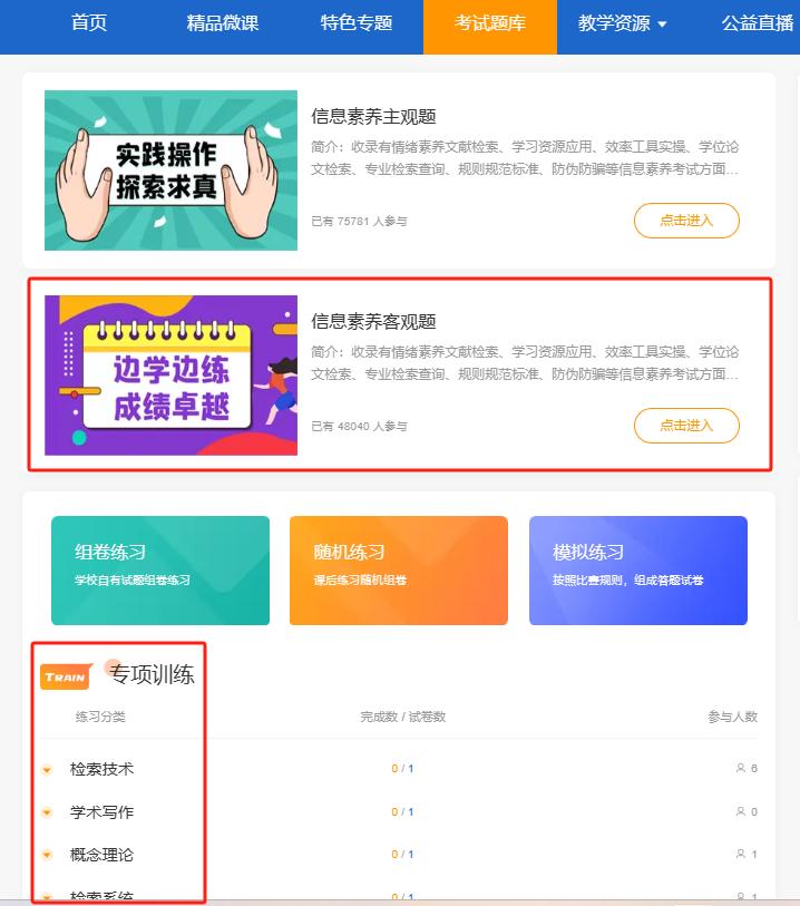 1、备赛系统(信息素养教育数据库)