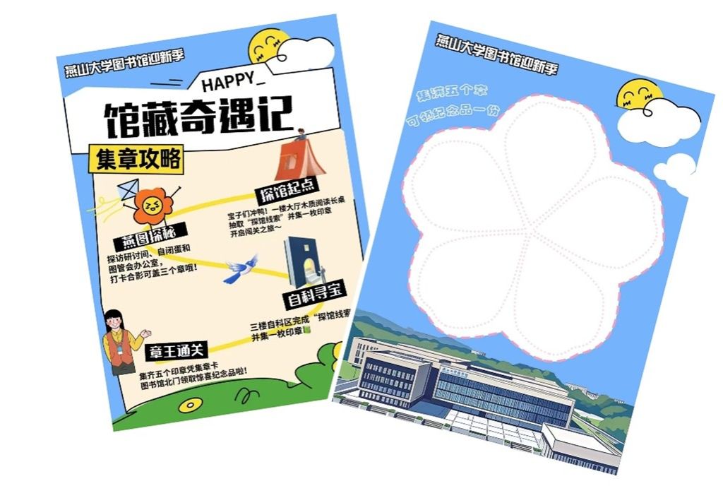 活动内容:为帮助新生快速了解图书馆的资源和布局,增进图书馆与学生之间的互动和联系,图书馆特别策划组织了“馆藏奇遇记”活动。新生们根据提供的线索,在图书馆内穿梭,寻找隐藏在图书馆不同区域的“宝物”;每发现一处宝物,便可在图书馆的相应打卡处盖上印章。集齐所有印章者将获得图书馆精心准备的纪念品一份。