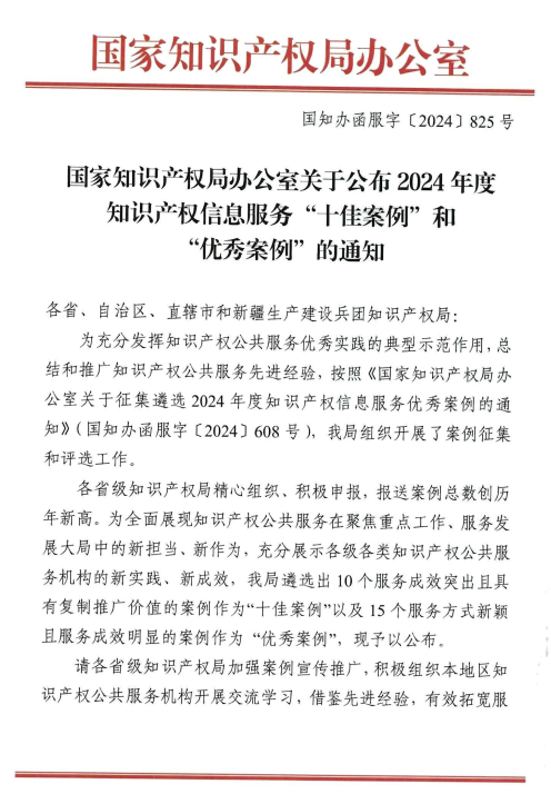 据悉,本次案例征集由各省级知识产权局精心组织,积极申报,报送案例总数创历年新高。国家知识产权局从400多家全国各类知识产权信息公共服务机构报送的案例中,以服务成效突出且具有复制推广价值和服务方式新颖且服务成效明显为标准进行遴选,充分展示各级各类知识产权公共服务机构的新实践、新成效。